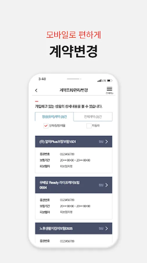 2.Contract management/change - Customer information change, contract confirmation, complete sales self-monitoring, car renewal insurance premium confirmation, car insurance premium confirmation, car number registration change, driver scope change, temporary driver special contract subscription, car insurance subscription amount change, driving Street photo registration/signup, final mileage photo registration, black box photo registration