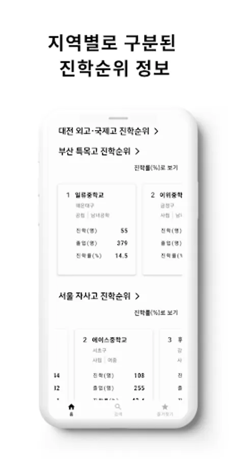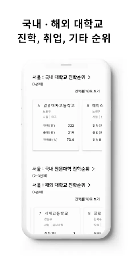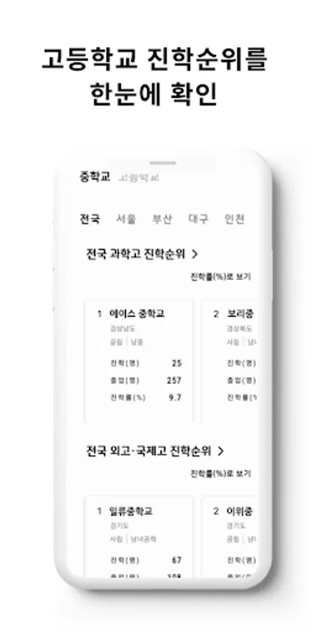 You can check the admission and career rankings for both middle and high schools nationwide and in 18 regions including Seoul, Busan, Daegu, and Incheon.