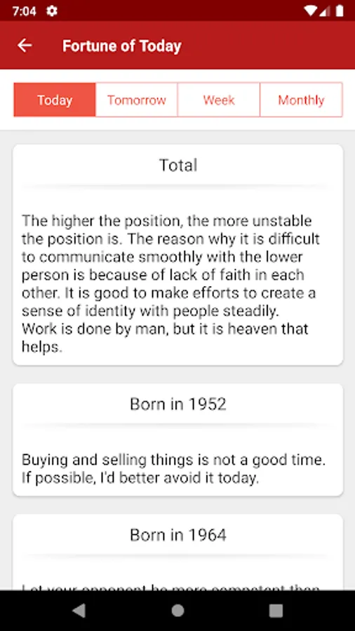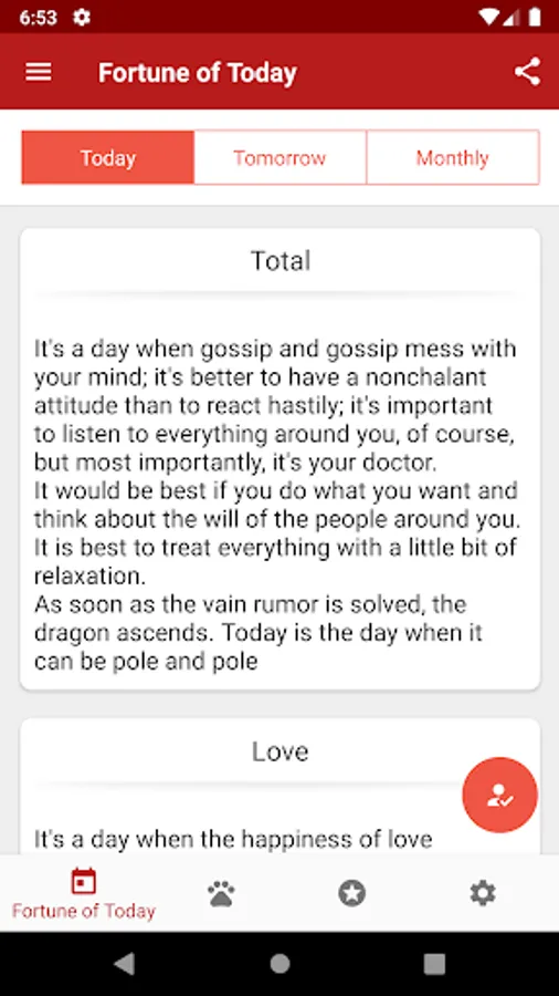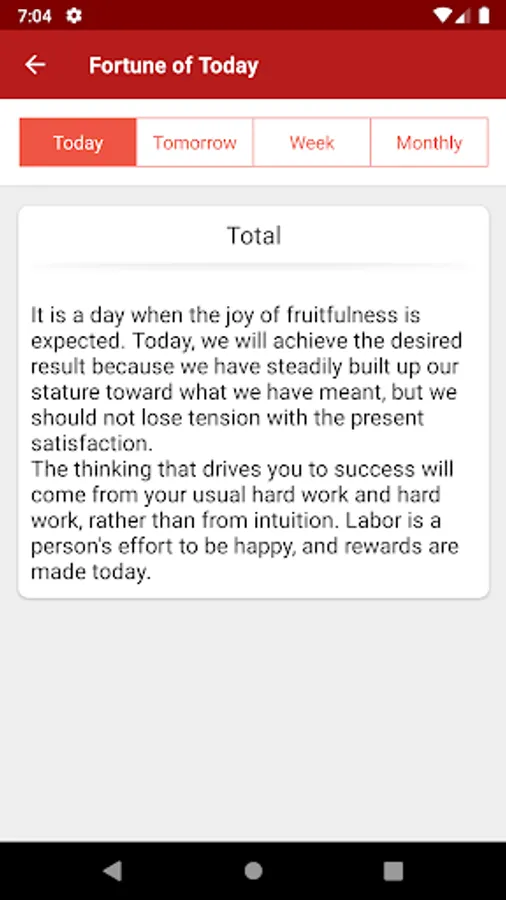Today's Fortune is the perfect app for anyone who wants to know what the future holds. With our app, you can get daily horoscopes for your zodiac sign, as well as fortunes for your Chinese zodiac sign and constellation. We also offer New Year's fortunes, so you can start the year off on the right foot.