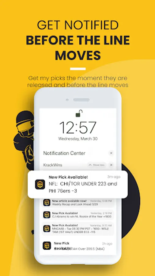 Receive Pick Notifications BEFORE the line moves – Get the plays Krackman makes himself AS he makes them with real-time push notifications sent to your phone, so you can take action at the best of the number.