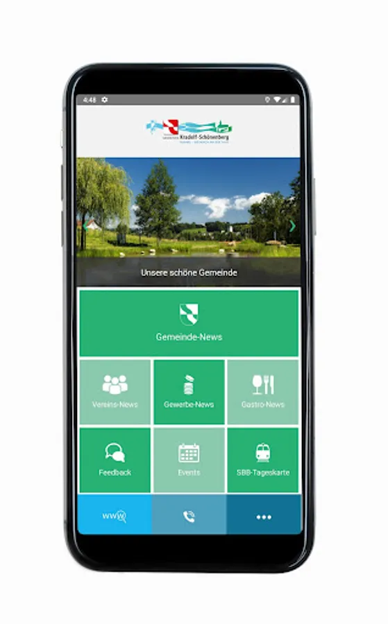 With the mobile app "Nathürlich" from Kradolf-Schönenberg you can get the most important information about the Thurgau community quickly and easily. News about the club, gastronomy, trade, events or special opening times are displayed in the app. SBB day tickets can be reserved with just a few clicks. The app is a quick and practical addition to the Kradolf-Schönenberg website and always keeps you up to date.