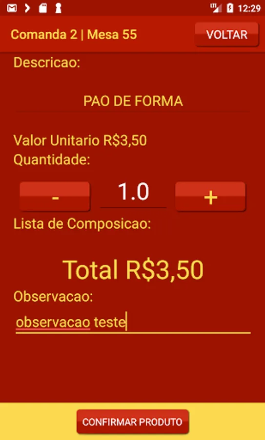 - Insert the products on the table / commands at the same time that the customer places his order;