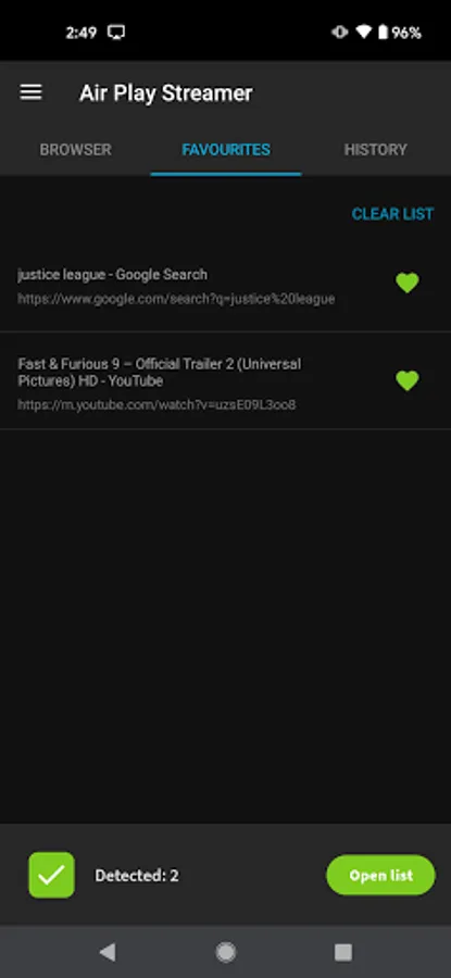- List of videos found on webpage;