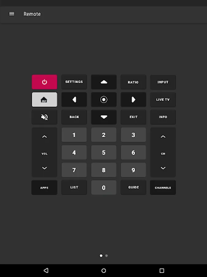The application contains a large set of buttons using which you will get access to all the functions of your TV. Now all the necessary for control are on hand - true LG remote. The automatic connection function relieves you from the necessity to enter the PIN every time to connect to the TV. A large touchpad will allow you to easily select and flick the content on the TV screen.