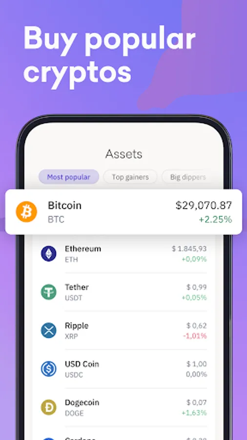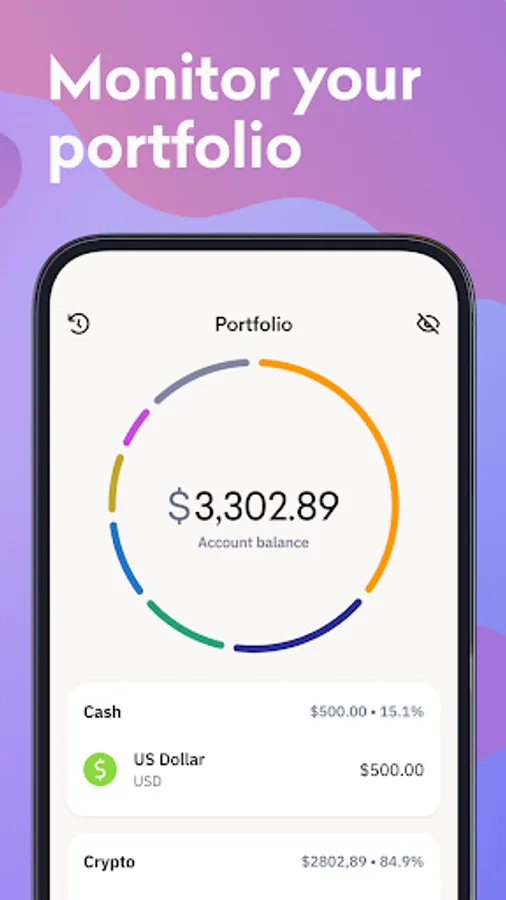 • Quickly adjust your portfolio with a tap to buy crypto or sell