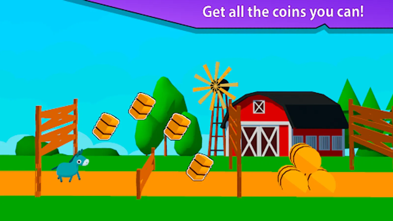 - Run, dash and jump through your crops, destroy hay bales, and use the coins to buy new animals.