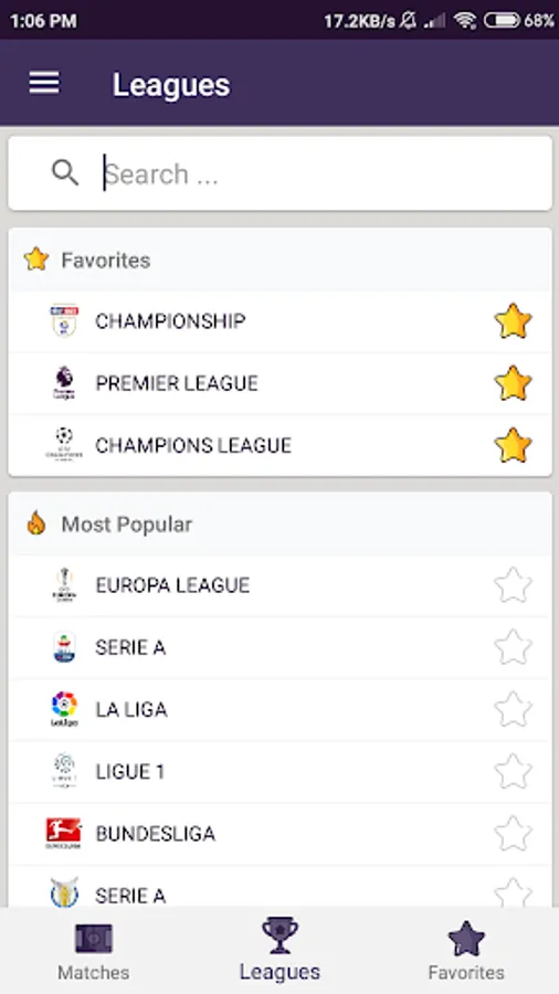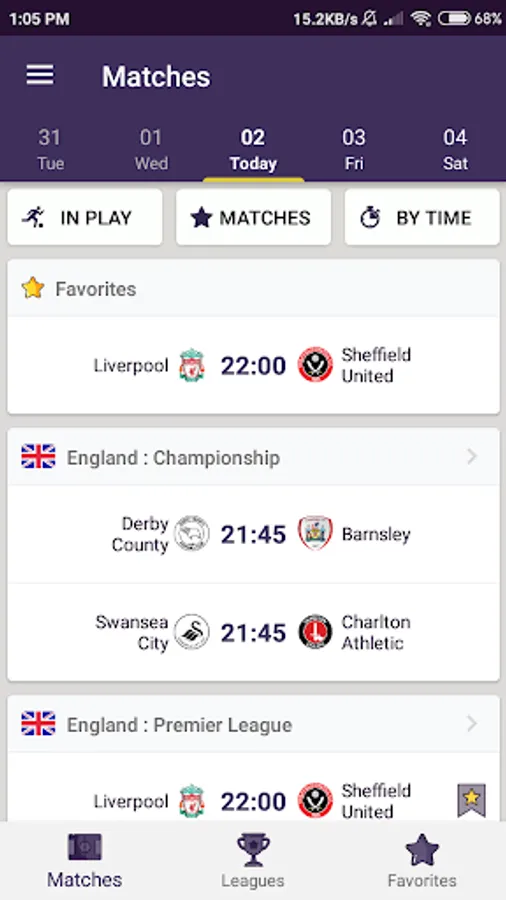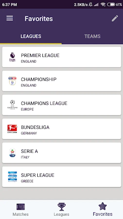 - Option to add a team or league as a favourite