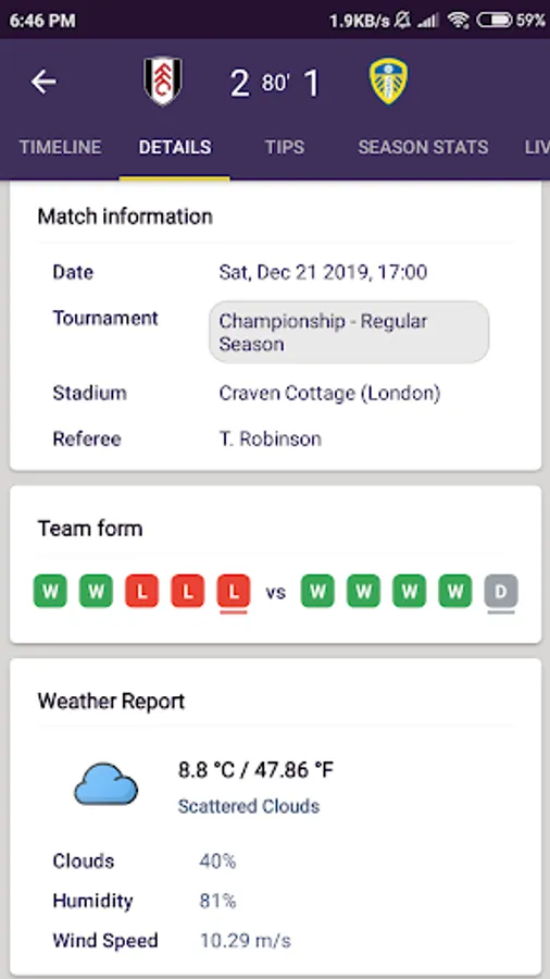 - Both team’s previous results in the league