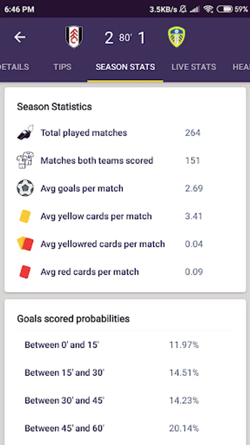 - Match Live stats