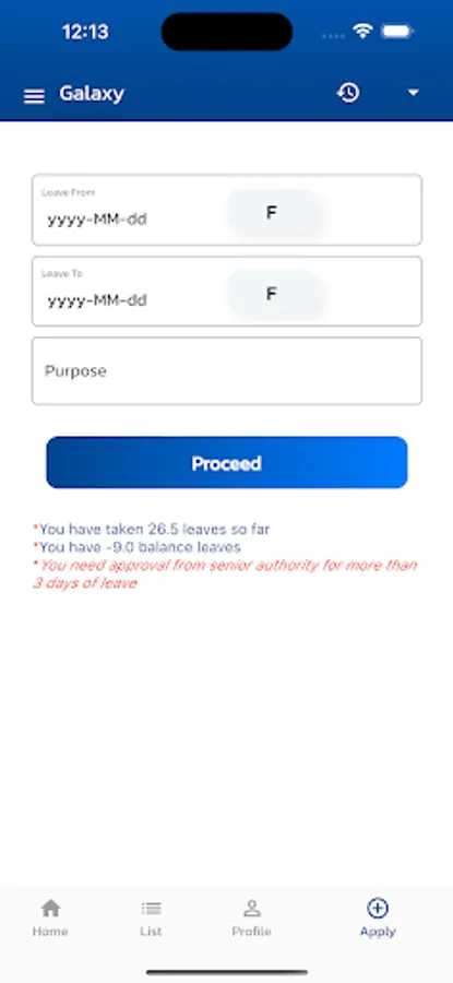 Galaxy mobile app is an application for managing employee's leave and SmartForce module for marketing.