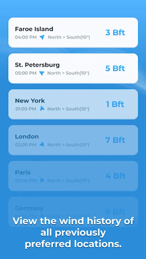 - Access up-to-date wind speed history with direction, BFT value and type for any location.