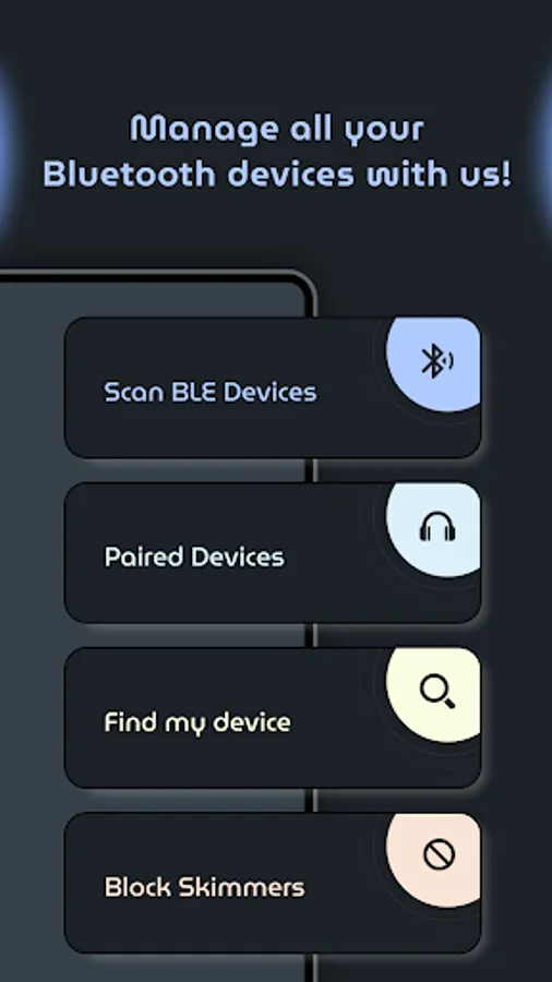 ☑️ Block Skimmers: Shows all unrecognized nearby devices so, with more safety & protection you can connect your device.