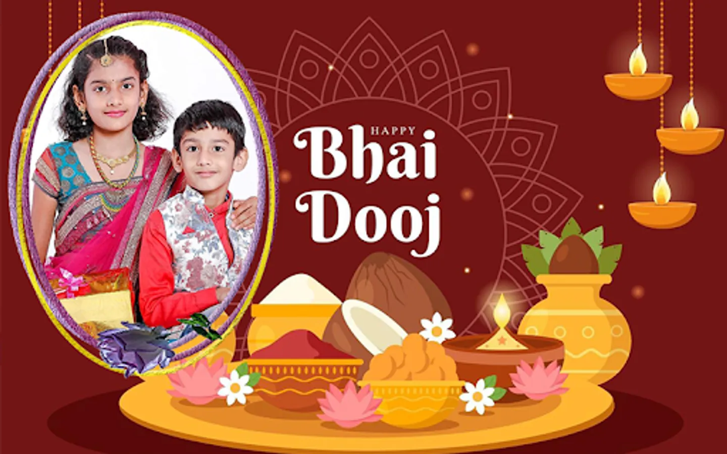 Create your own beautiful Bhai Dooj picture frames and share it to your loved ones.