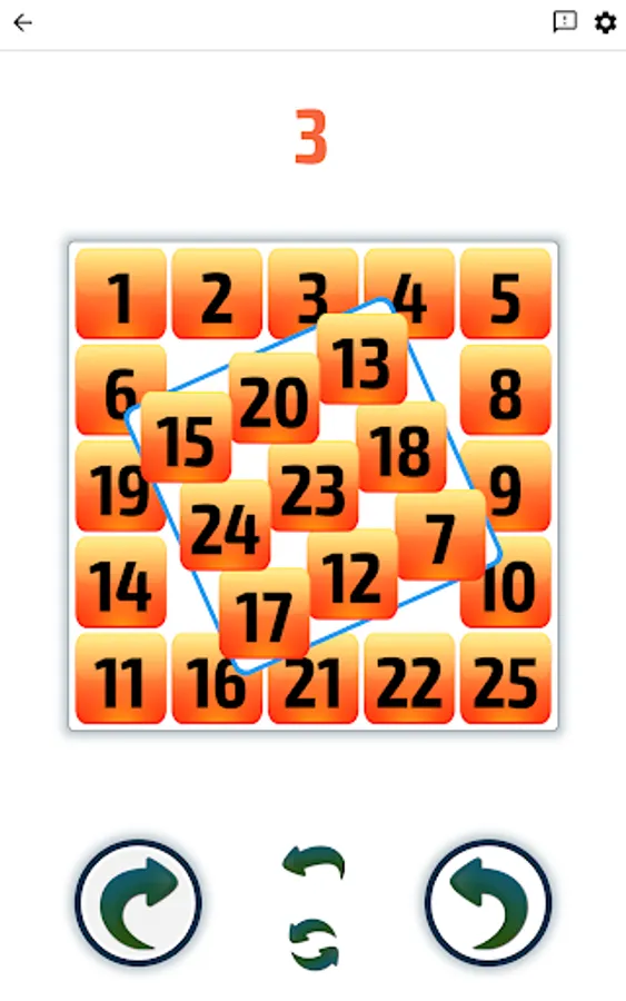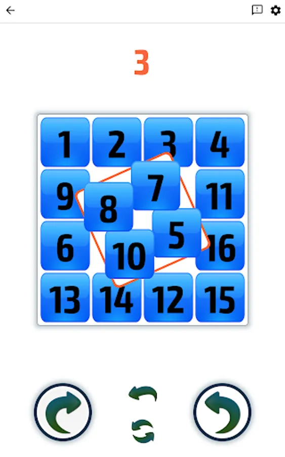 Each block of cells can be rotated either clockwise or counterclockwise, and the player must use their logical thinking skills to determine the optimal sequence of rotations to solve each puzzle. As the game progresses, the puzzles become more complex and challenging, with larger grids and more numbers to arrange.