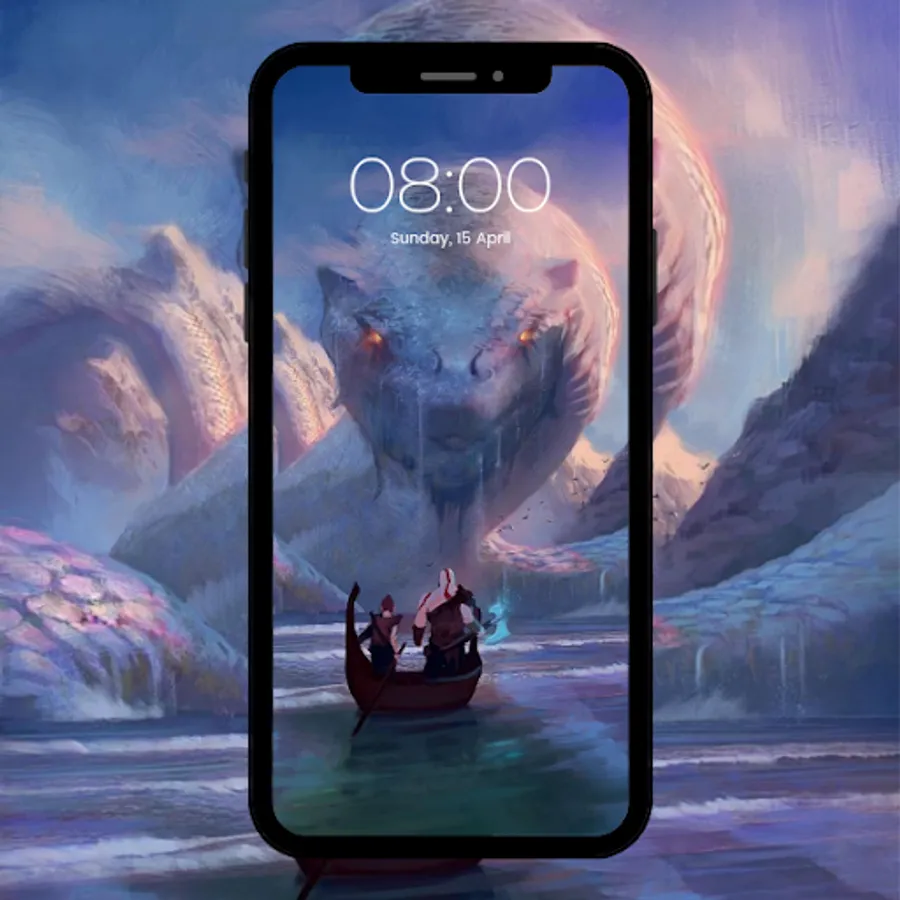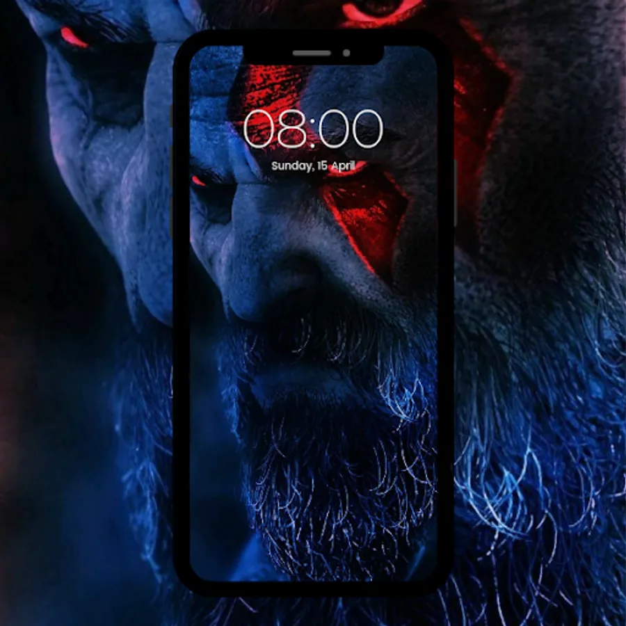 This wallpaper app is about Kratos a Spartan warrior the Greek God of War meanly and from time to time some famous moment from the game or with his son.
