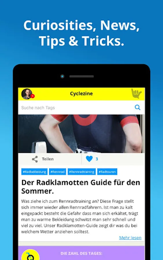 If you love cycling, Cyclique is the ultimate app for you: Find bike rides and like-minded cyclists in your area. Simple and Free! The new Cyclezine gives you tips & tricks from professionals and experts and you’ll find the best gadgets and innovations in the world of cycling. By the way, you can also make money with the app: Sell and buy your used bicycle items in seconds with your phone.
