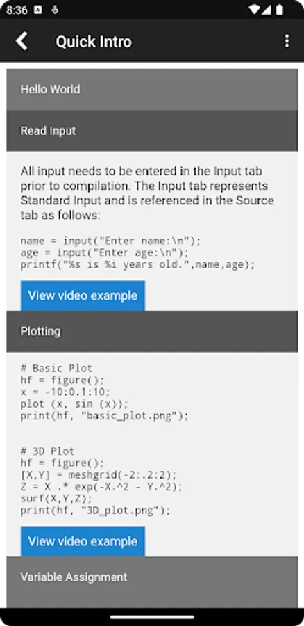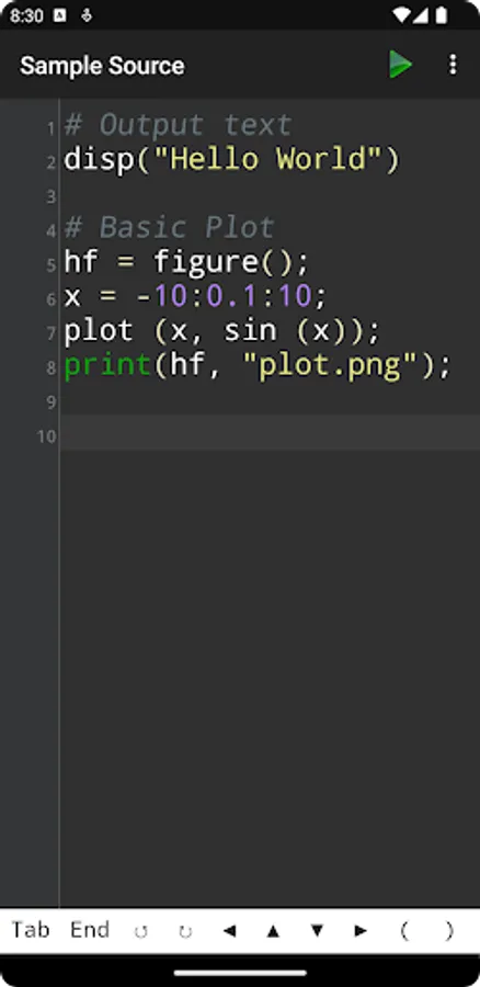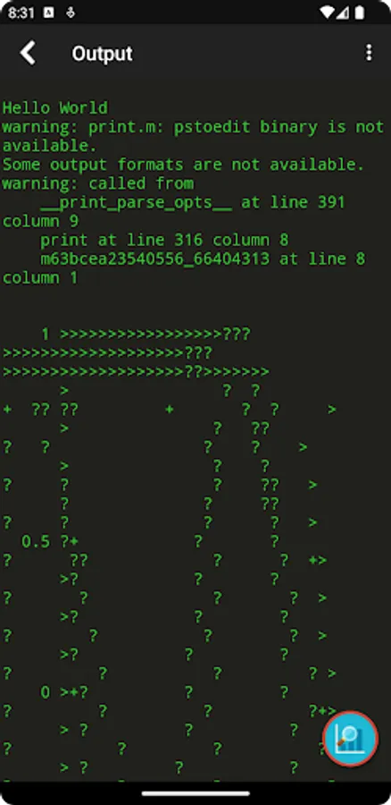 This app provides a mobile environment that allows you to execute Octave/MATLAB using the GNU Octave compiler.