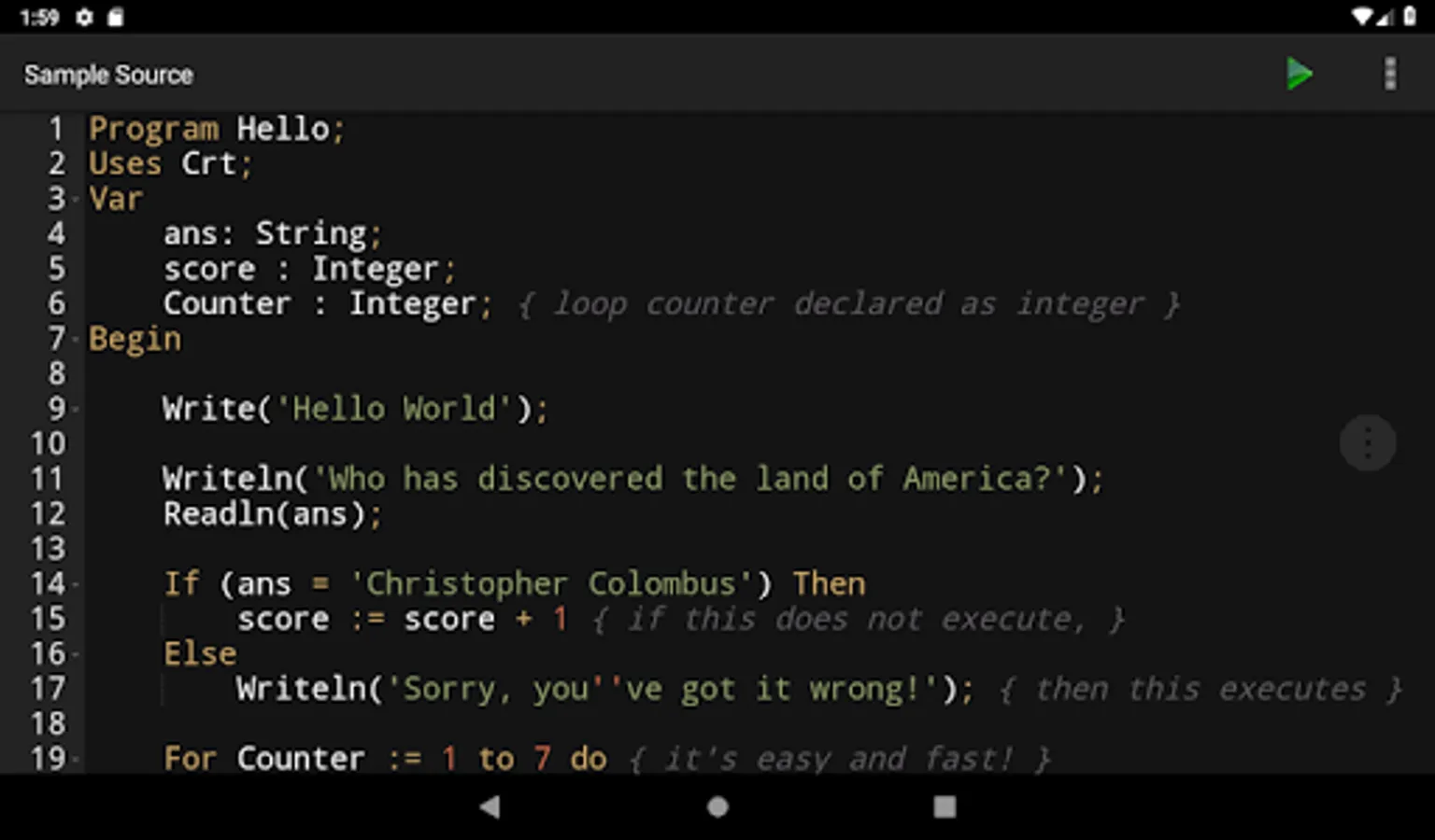- Advanced source code editor with syntax highlighting, bracket completion and line numbers