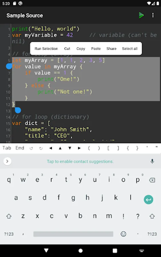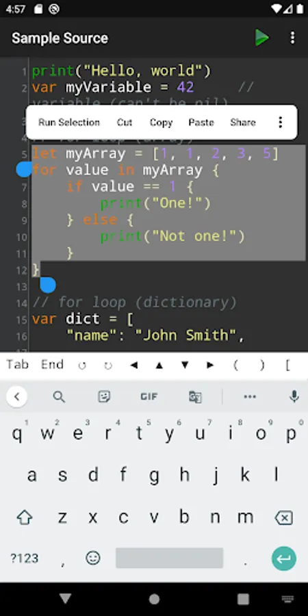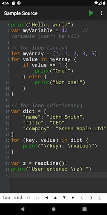 - Advanced source code editor with syntax highlighting, bracket completion and line numbers