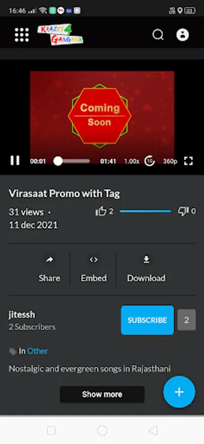India's first Rajasthani channel App in 'Rajasthani language' showing best of the Mytho's , Movies, Songs, Bhajans and covering all festivities of Rajasthan in its own language. The Mobile App- K4G (Krazzy 4 Gangaur) will enchant the youth and will be an interactive platform to host their own videos, UGC, Gangaur's channel auditions and contests, blogs, chat etc. Our App is supported by our FTA Satellite channel 'Gangaur' - which is widely available in terms of distribution covering all Major cable operators and Dth.