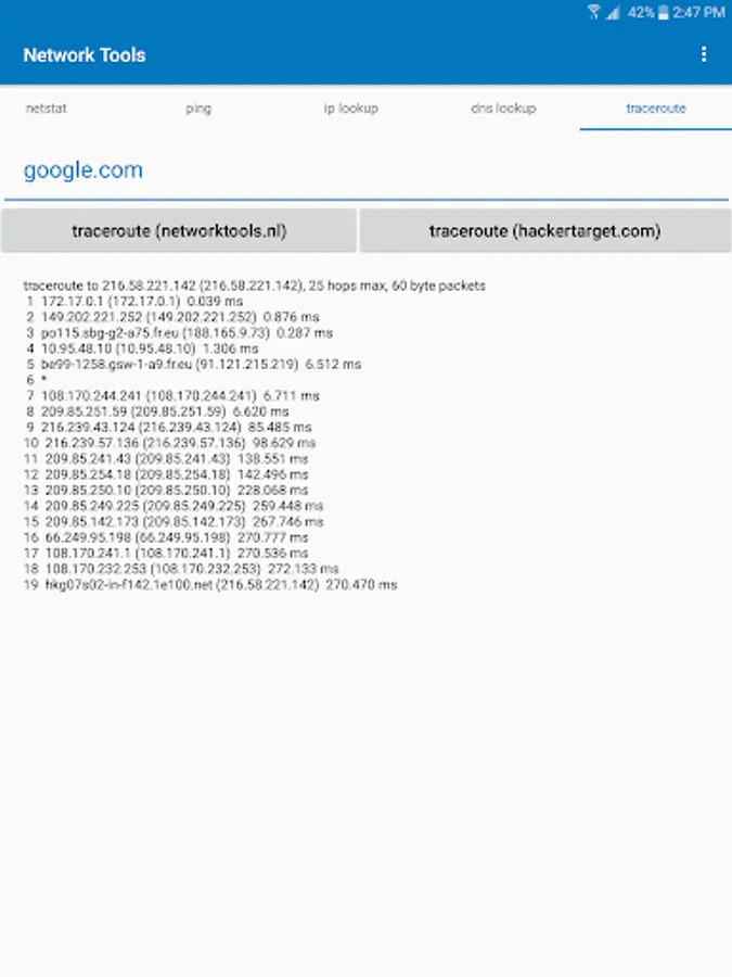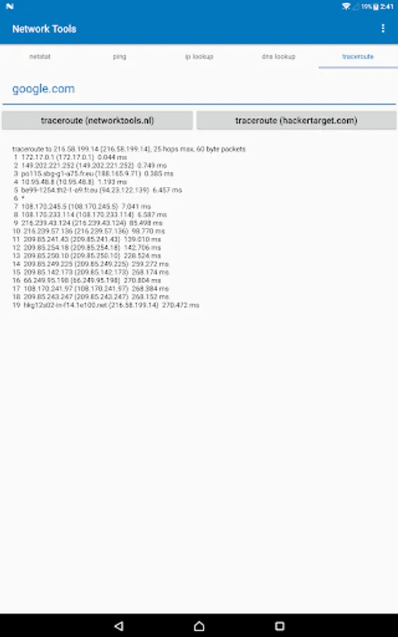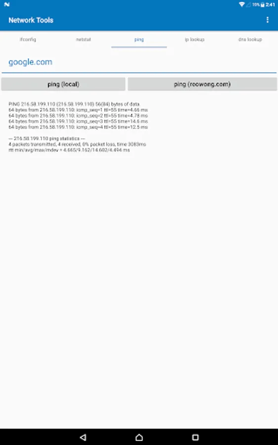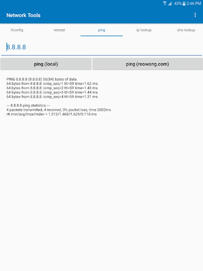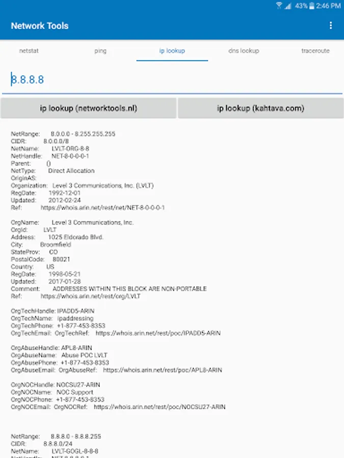 This app provides basic network tools for network administration, support and diagnostic. It is useful for IT Administrators and IT Specialisted to get network information and identify problems, and also suitable for people who are interested in networking.