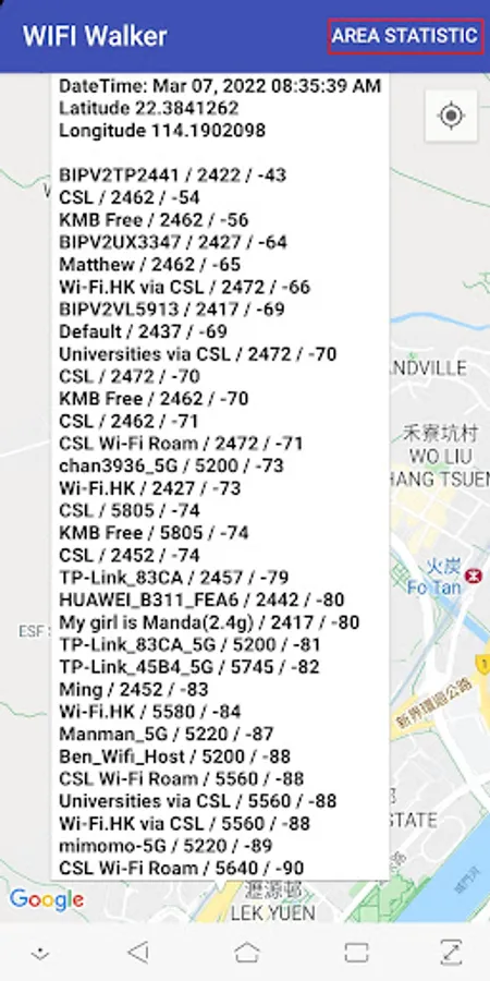Area Statistic Page used to summarize the captured SSID information alongside you.