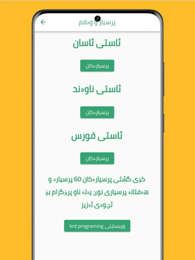 وەک گروپی krd programing پێمان باش بوو کار لەسەر پرسیار و وەڵام بکەین و دوبارە ئەپێکی نوێ بۆ خزمەتی ئەوە بێ بەرامبەر بڵاو بکەینەوە