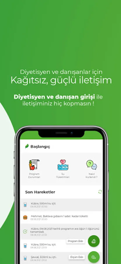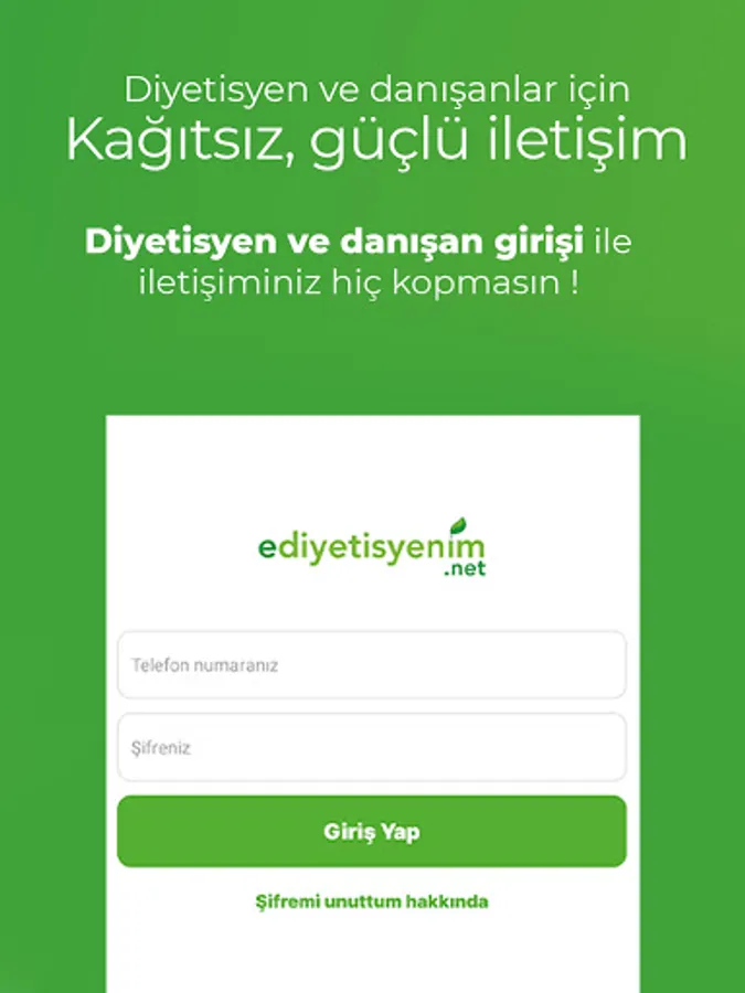 You can enter our application as a consultant or dietitian. The dietitian and the client can message through the application at any time.