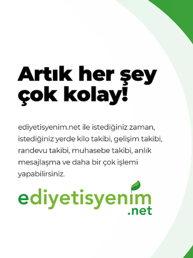 You can do weight tracking, progress tracking, appointment tracking, accounting tracking, instant messaging and many more with ediyatiim.net whenever and wherever you want.