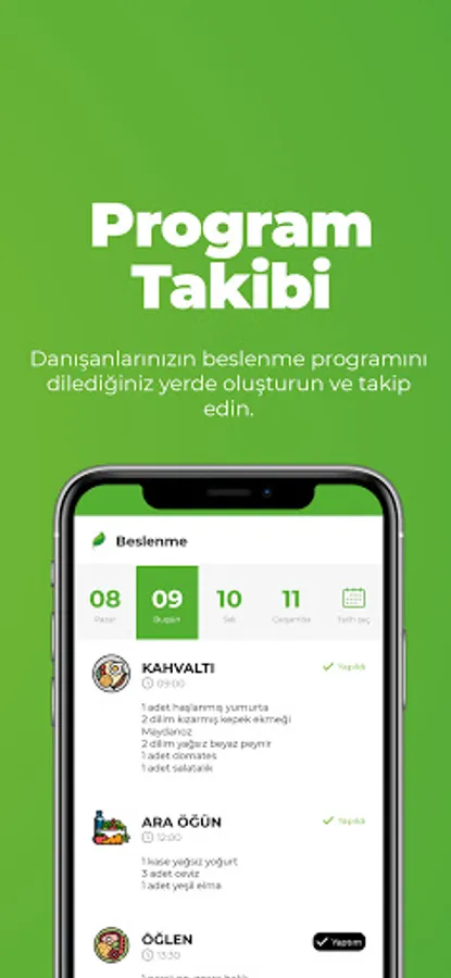The dietitian can add clients and follow all the movements of the client instantly. In addition, the dietitian can provide appointment and accounting management through the application.