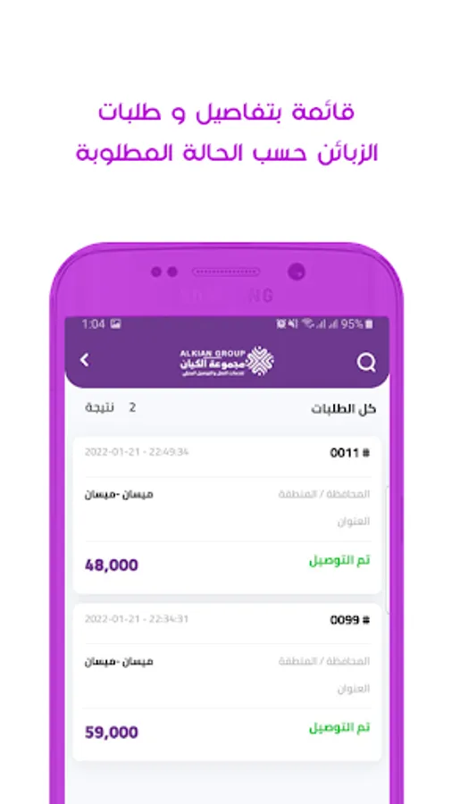 متابعة جميع طلبات الزبائن