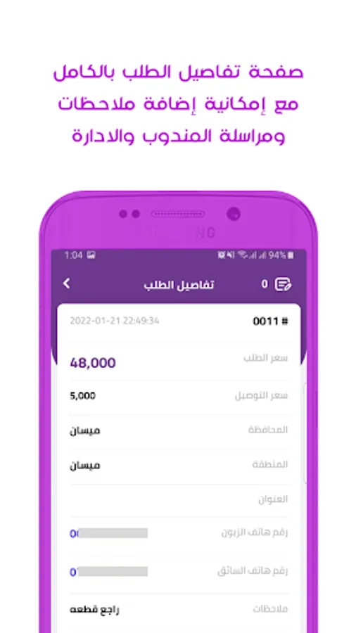 اشعارات ملاحظات الادارة , المندوب , العميل