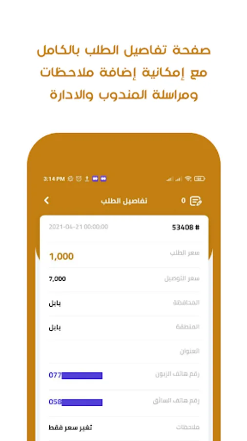 اشعارات ملاحظات الادارة , المندوب , العميل