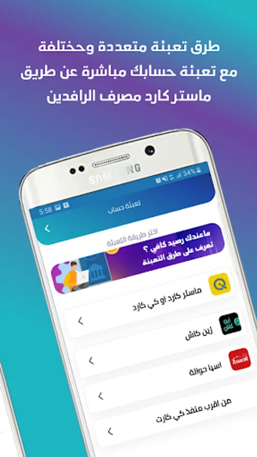 ايضاً مع امكانية تعدد طرق التعبئة داخل التطبيق لتعبئة محفظتك الخاصة عن طريق