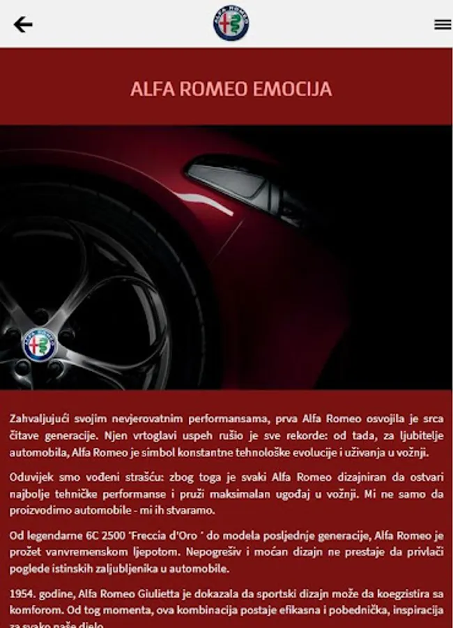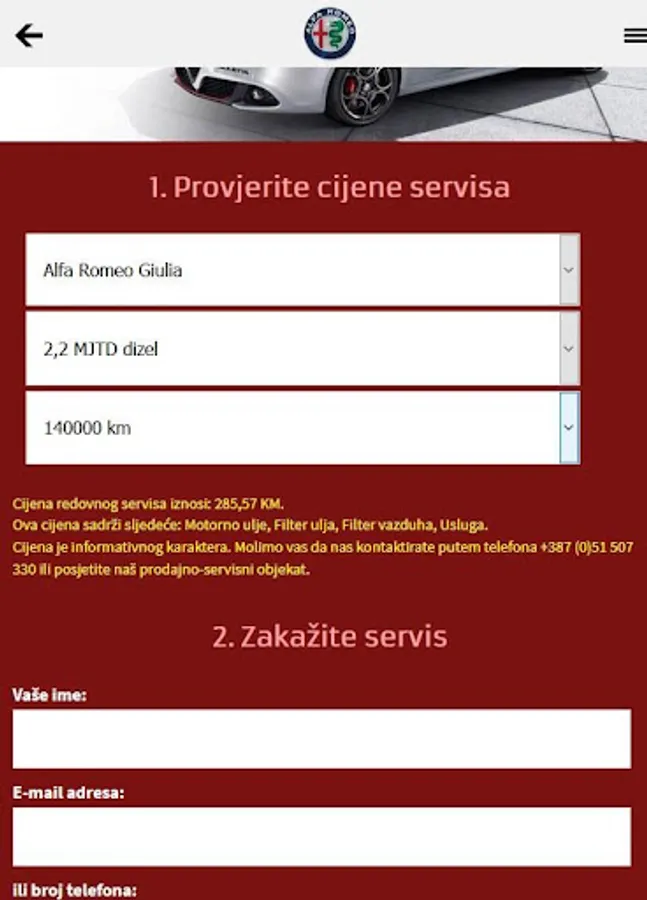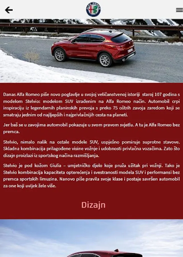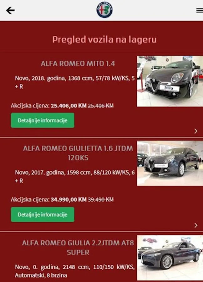 The application gives you an insight into the current range of models of Alfa on BiH market, and are able to look at the stock of available vehicles with short delivery time.