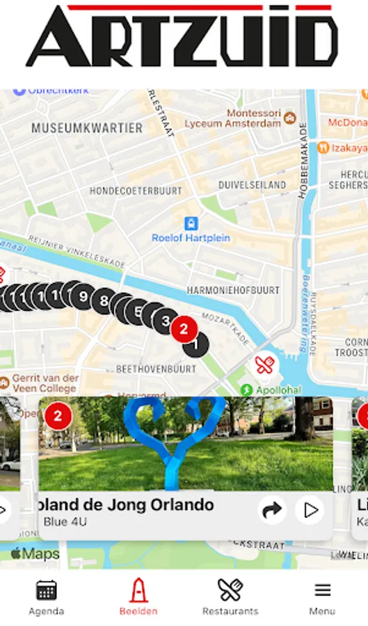 Walk the sculpture route of the Amsterdam Sculpture Biennale ARTZUID with this audio tour app. Listen to the information about the 50 sculptures and find all their locations in the blink of an eye.