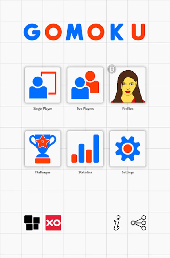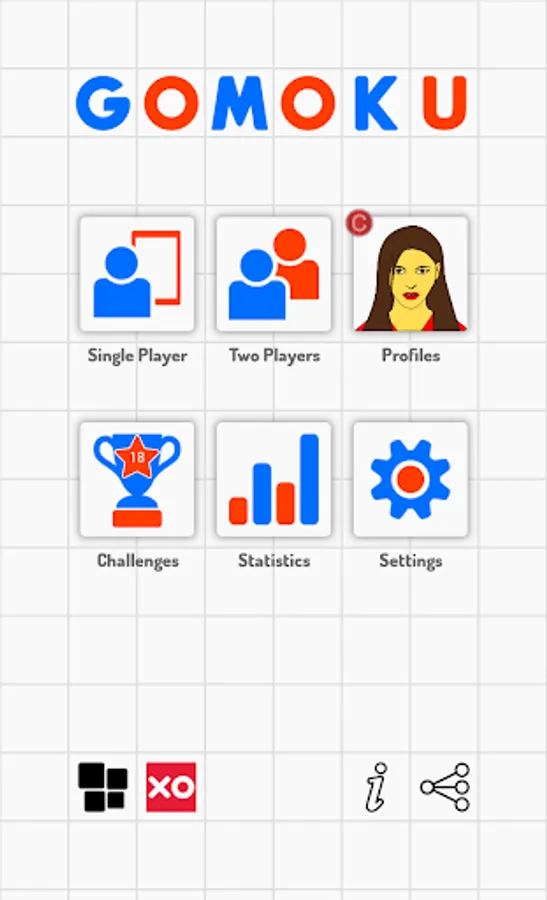 Five In a Row also known as Gomoku, Tic Tac Toe, XO or XOXO with high quality artificial ingeligences and a lot of extra functions. It is the classic strategy game that develops logical thinking and concentration in an entertaining form.