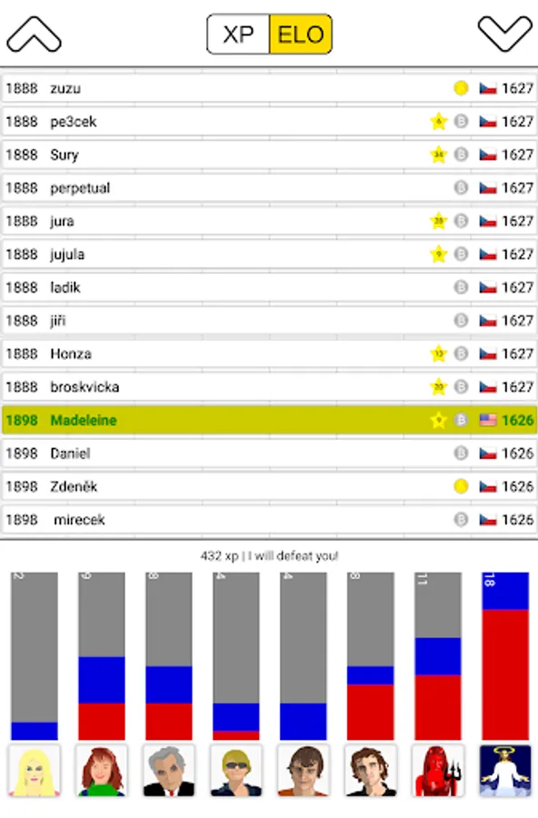 - Players are evaluated by "ELO" points (skill of a player) and experiences