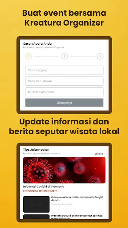 You can also book events such as family gatherings, outbounds, capacity building or the like through this application to be processed by the Kreatura Organizer team to contact you and send offers.
