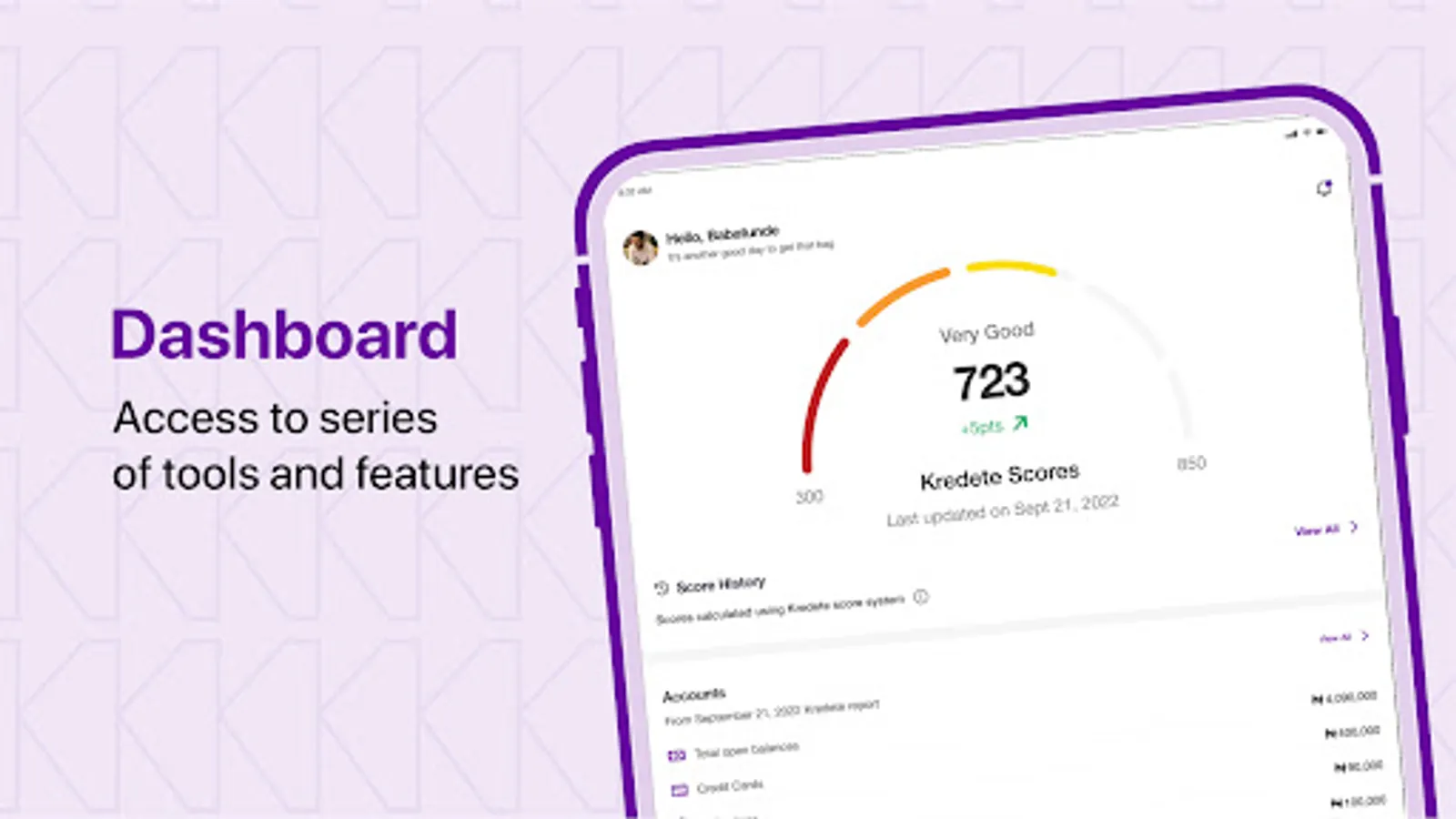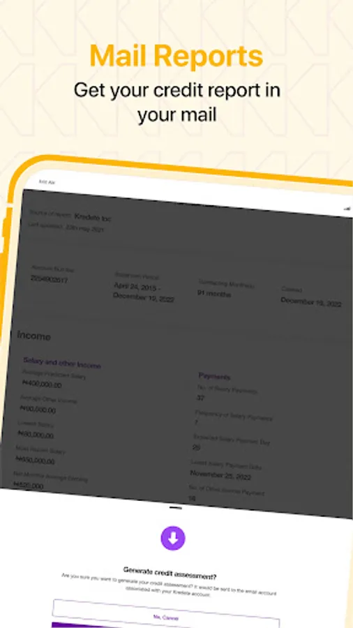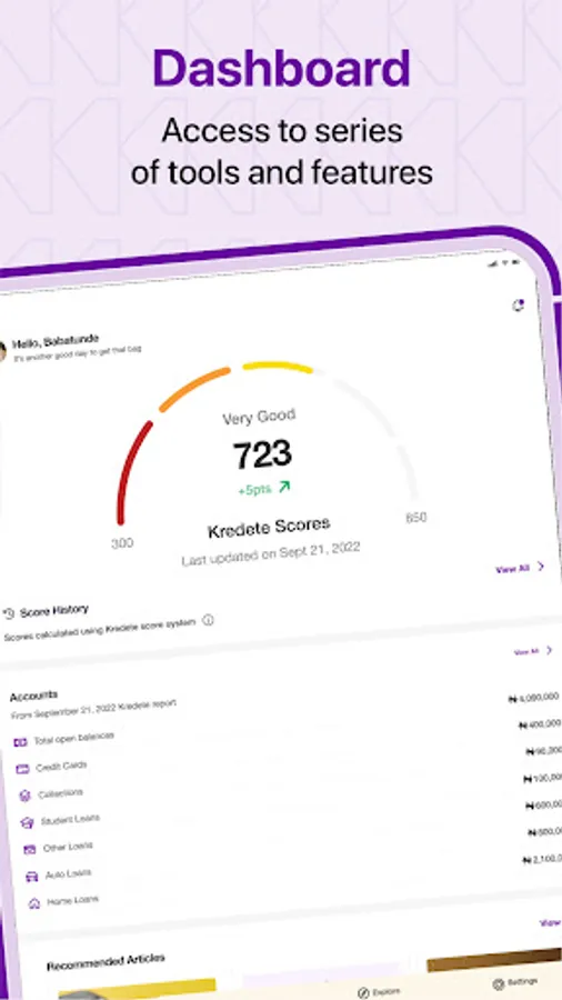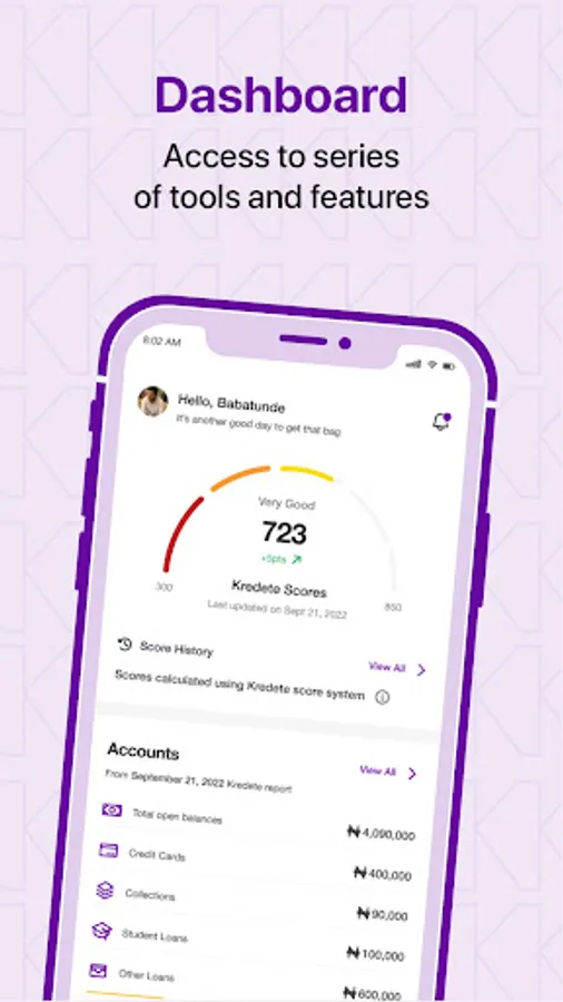 The Kredete App is one of a kind in Africa. It helps users keep up with your finances from your phone. From your phone you can request for your credit report, get access to loan recommendations and credit products that suit your needs at no cost. The Kredete App gives you everything you need to stay on top of your credit finances. Kredete dey for everybody.