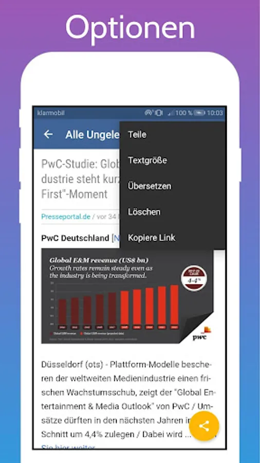 ✔ Share news via e-mail, Facebook, Twitter, WhatsApp and other social media