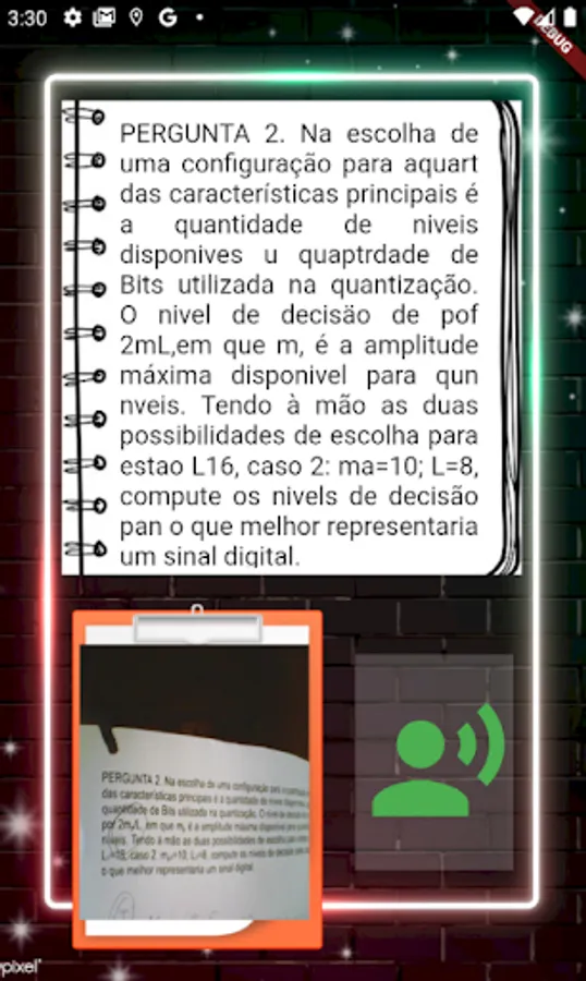 The application transcribes, in a larger font, the text captured from an image, with the option of sound reading.