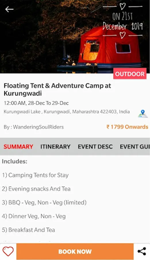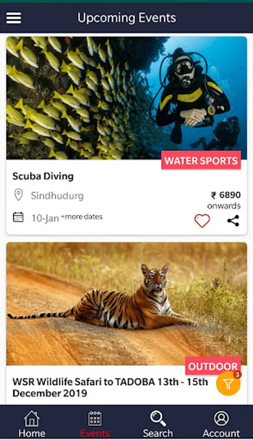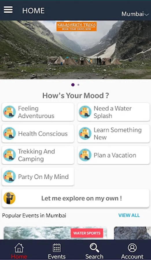 Some of the top genres that we have- Trekking, Camping, Adventure Sports, Water Sports, Outdoor Tours, Parties & Nightlife, Clubbing, Workshops, Cycling, Bike Rides, Photography, Yoga, River Rafting, Bungee Jumping, Paragliding, Parasailing, Scuba Diving, etc.