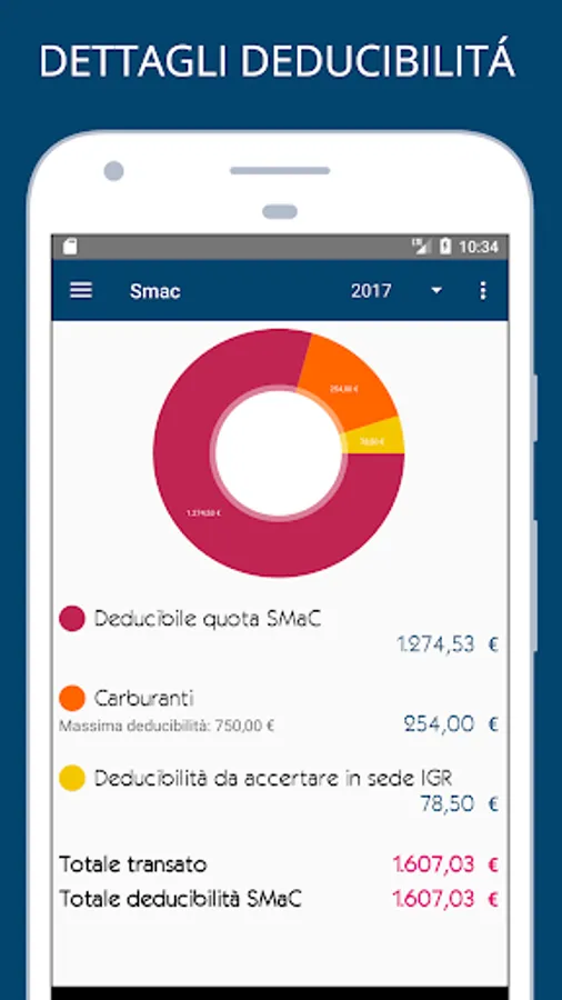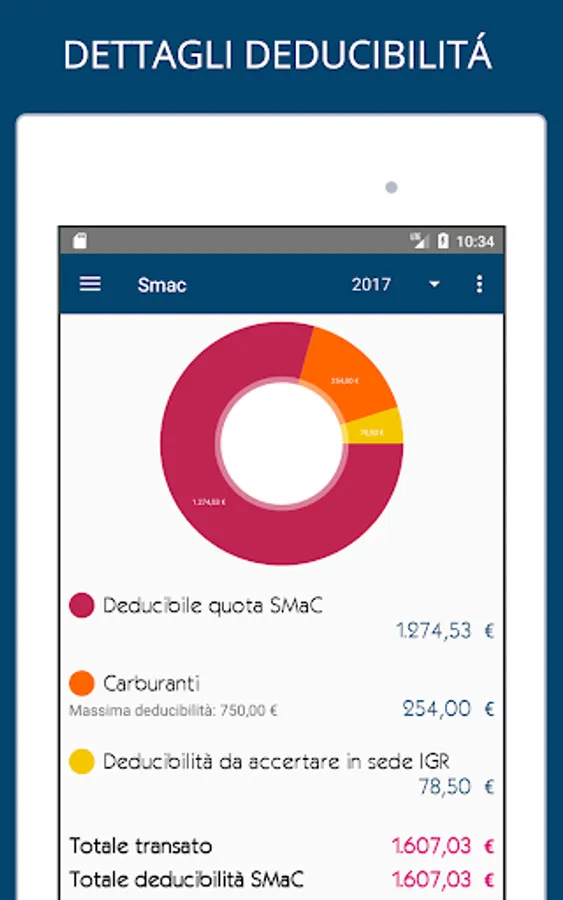 • A section with graphic and detailed breakdown of expenses for groups of deductibility
