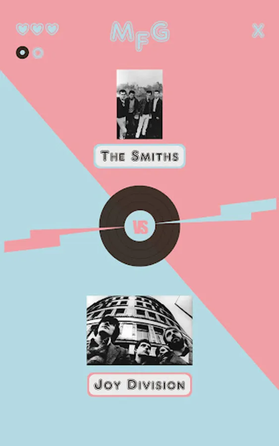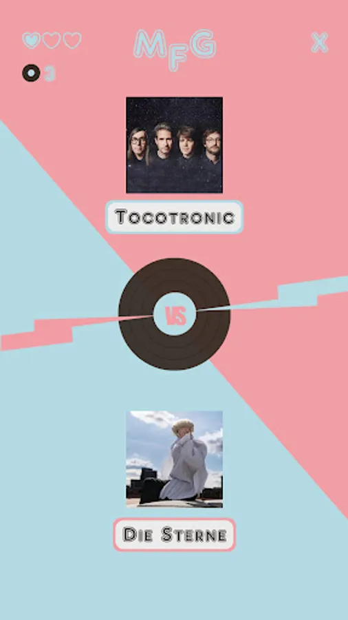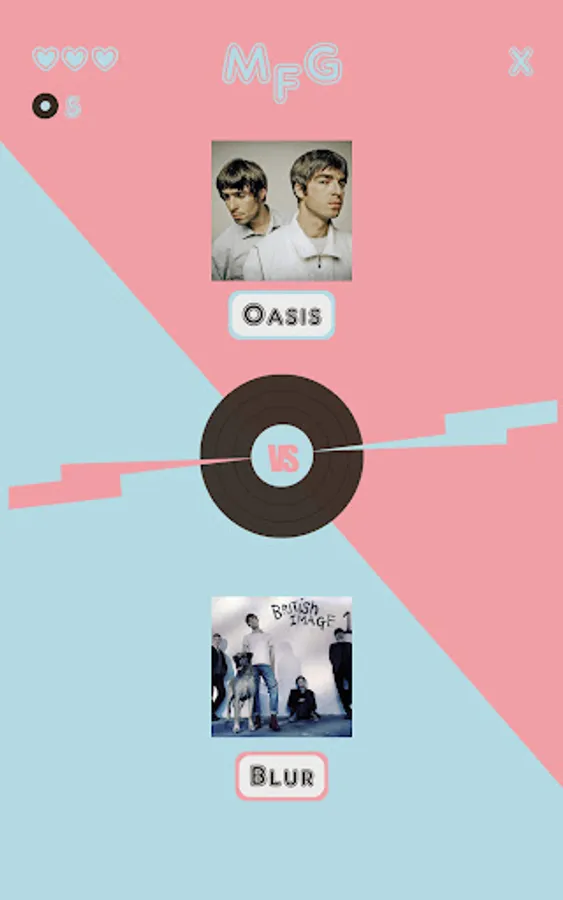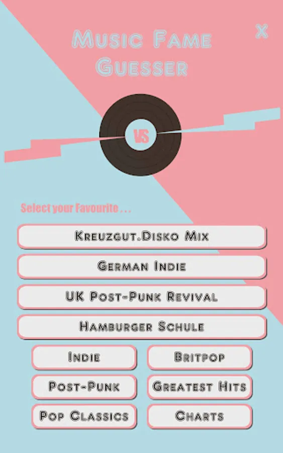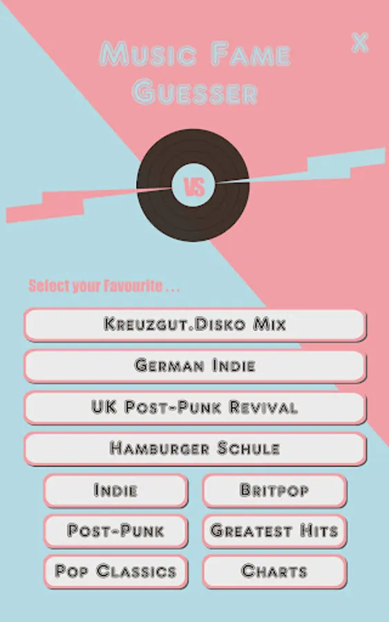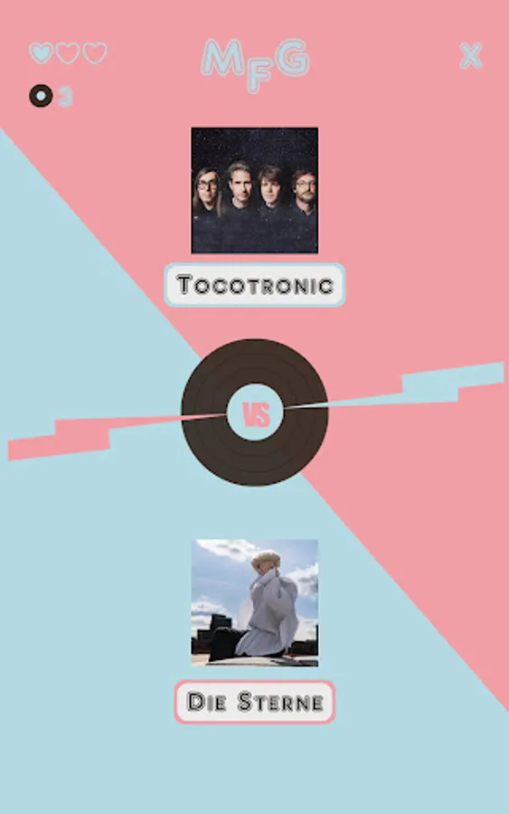 After you have chosen your favourite genre, you will be shown two random artists. You have to guess which one is more popular. How many correct guesses can you make without losing your 3 lives?
