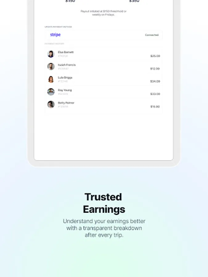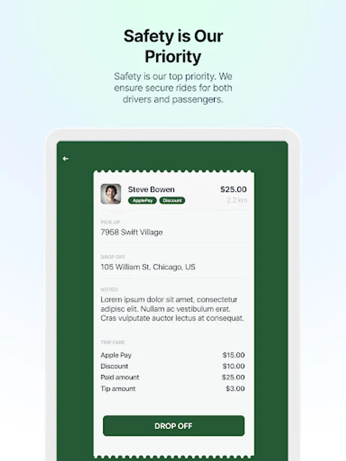 Our app makes it easy for you to manage your rides. Accept ride requests, navigate to your rider's location, track your earnings, and receive valuable feedback all in one place. We've also built in features to help you plan your time efficiently.