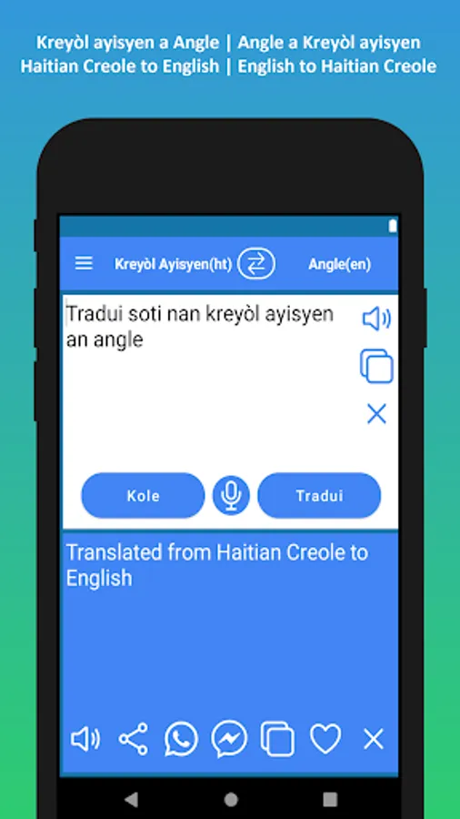 ✓ Use it as a Dictionary. You can type your words in English and get the exact word in Haitian Creole. You can type your words in Haitian Creole and get the exact word in English.
