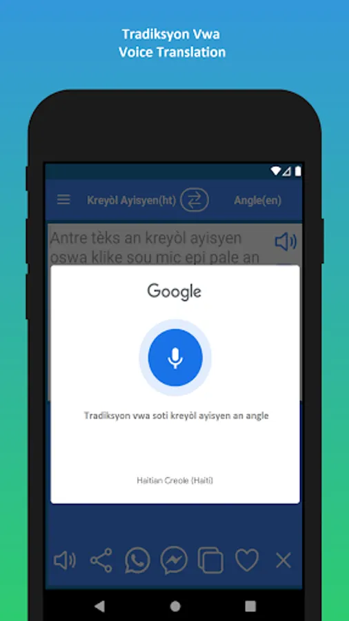 ✓ 4. Voice typing in Haitian Creole. Voice Translation from Haitian Creole to English.