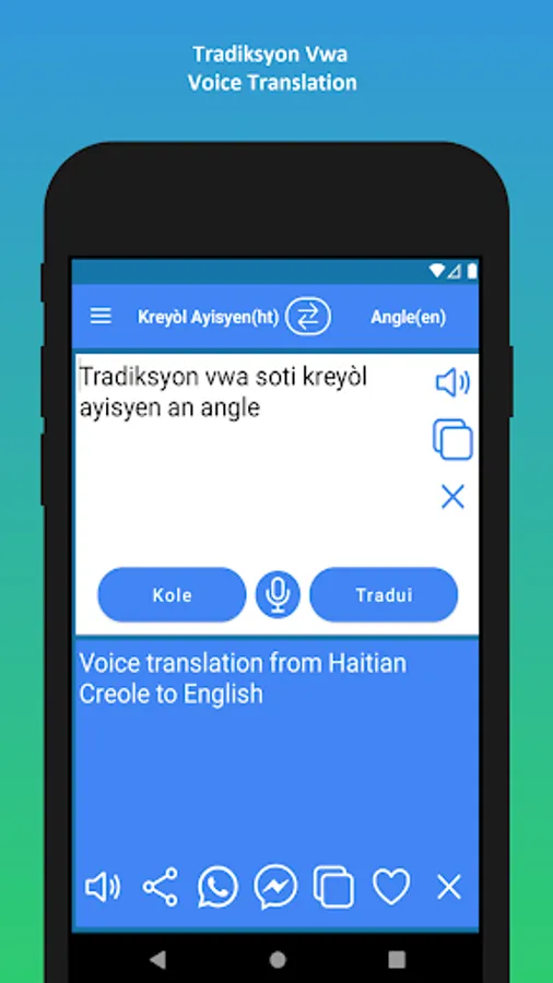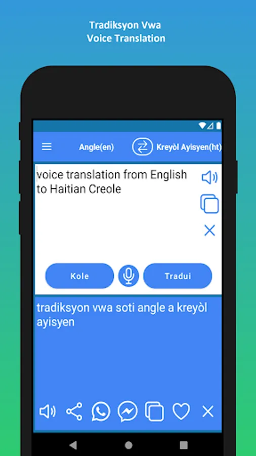 ✓ Using inbuilt voice recognition technology, you can type your text using your voice and then translate the text. This convenient feature allows you to translate regular conversations. You can translate your English voice to Haitian Creole and Haitian Creole voice to English.
