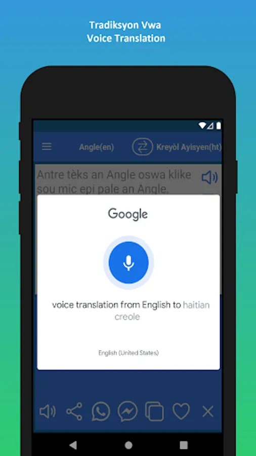✓ 3. Voice typing in English. Voice Translation from English to Haitian Creole.